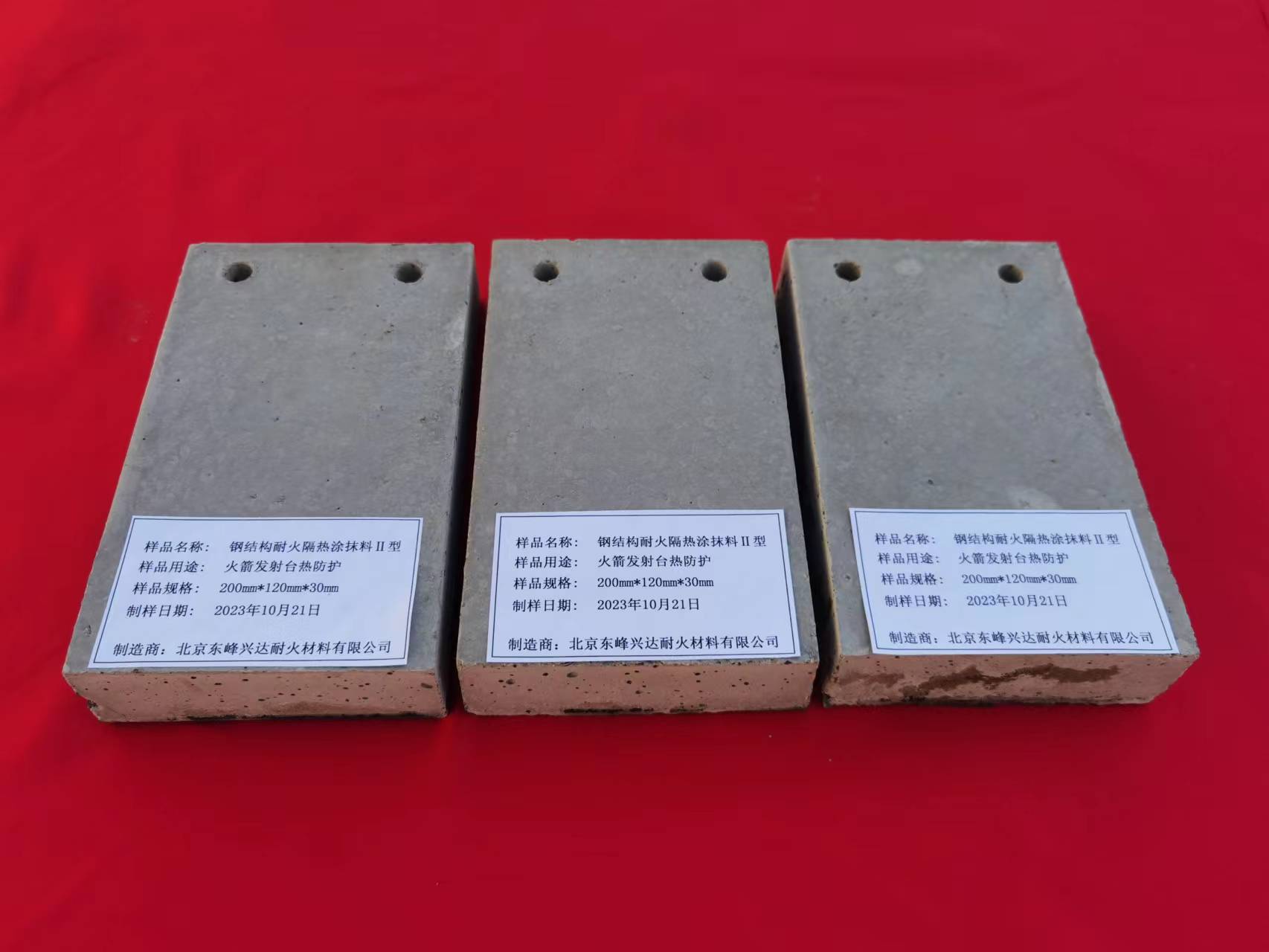 近日,我司鋼結(jié)構(gòu)耐火隔熱涂抹料在北京航天長征飛行器研究所完成燒蝕試驗(yàn)。實(shí)驗(yàn)條件:測試設(shè)備為YA6804型氧氣煤油發(fā)動機(jī);發(fā)動機(jī)燃燒室壓力1.4±0.05Mpa;發(fā)動機(jī)余氧系數(shù)0.7±0.03;發(fā)動機(jī)噴口直徑65mm;噴口出口燃?xì)鉁囟?210K;噴口燃?xì)馑俣?390m/s;燃燒室溫度3470K;燒蝕時間10s/件;試樣表面***大熱流密度17.9MW/m2;試樣表面壓力值0.37Mpa;試樣表面溫度約為2300℃,經(jīng)過高溫高速氣流燒蝕10s后試樣外形完整,沒有出現(xiàn)掉塊脫落現(xiàn)象,表面沒有裂紋,表面成玻璃相,背部溫升大約在15℃,隔熱性能良好!試樣燒蝕速率≤1.7mm/s,質(zhì)量燒蝕率≤40g/s,此次實(shí)驗(yàn)取得圓滿成功!