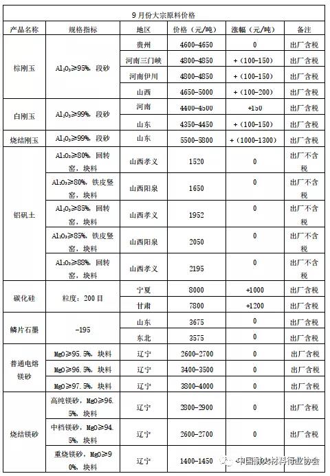23、大宗耐火原料近期價(jià)格