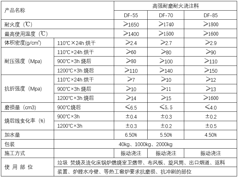 以下是本公司高強(qiáng)耐磨耐火澆注料的技術(shù)指標(biāo):