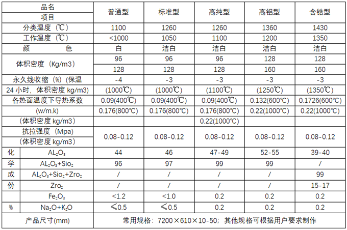普通型、高純型、高鋁型、含鋯型硅酸鋁甩絲纖維毯